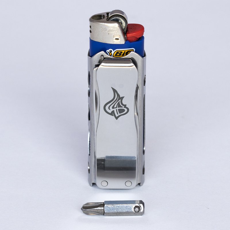 LighterBro Pro Lighter Sleeve - Multi-tool - 420 Stainless Steel - Easily Fits Your Favorite Lighters - Includes Mini Pocket Knife, Ruler, Scissors, Screwdriver, Poker, Key Ring & More (Silver)