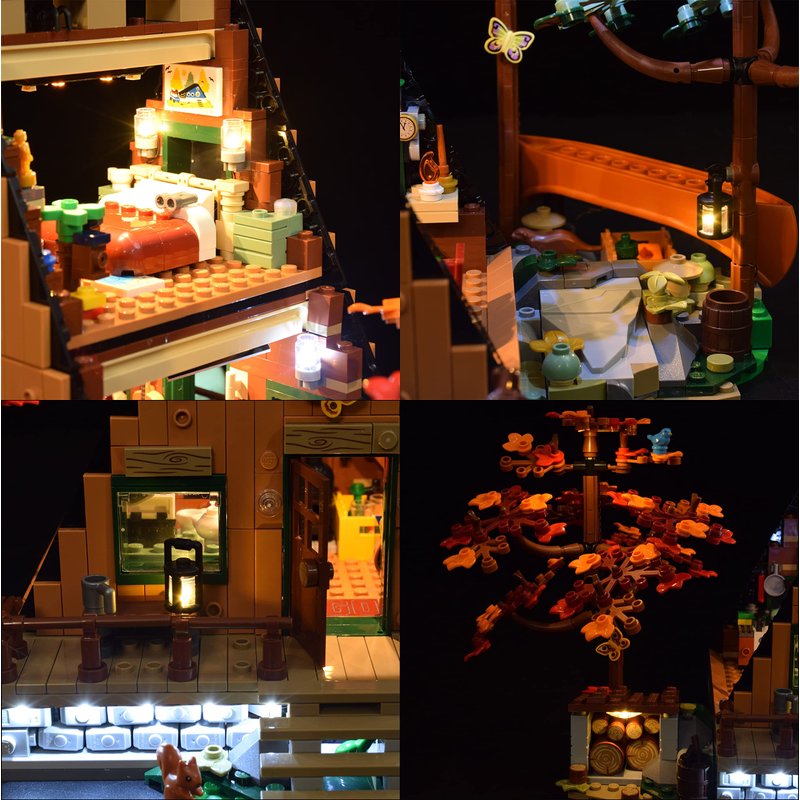 ✔ The lighting details are full,the indoor wall lamp and the small lamp under the tree and on the table have independent lights.✔ The firewood house and the surrounding trees have lighting and will not affect the independent combination.