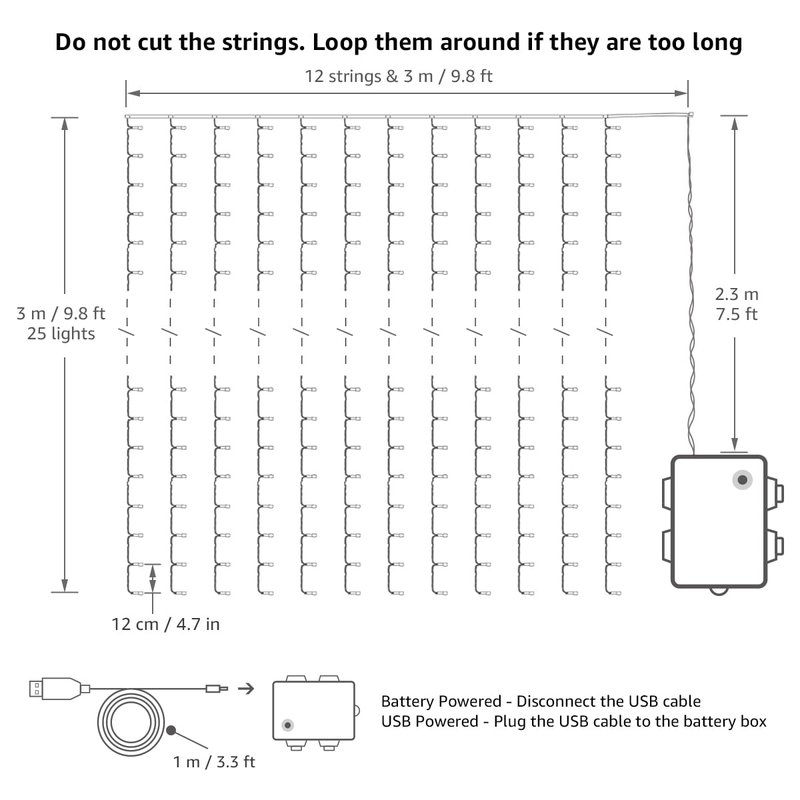 - USB Powered. Hook up the USB plug to a power bank. You can also plug in these curtain twinkle lights in a USB port hub outlet or use a regular USB phone charger base (not included)