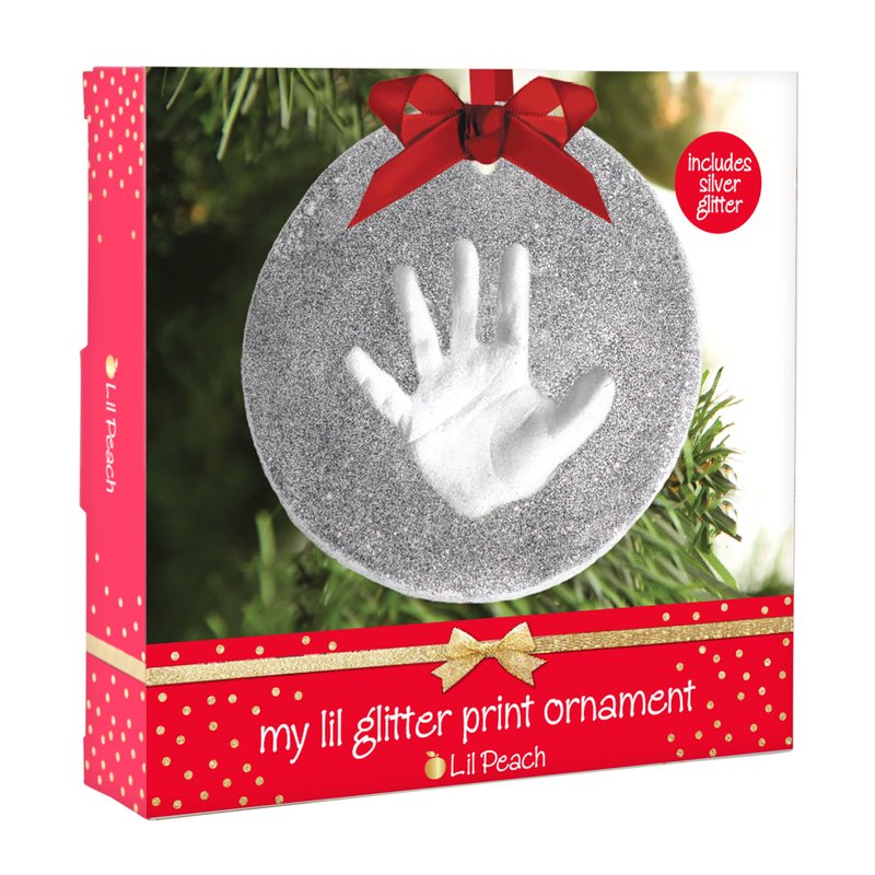 Lil Peach Baby’s Print Christmas Clay Ornament Kit, Baby's First Christmas Tree Ornament, for Baby Girl Or Baby Boy, Newborn Handprint Or Footprint Keepsake, Silver Glitter