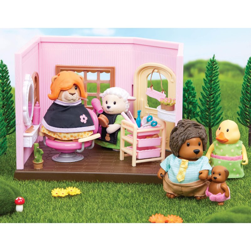 Li'l Woodzeez Lil Woodzeez – Animal Figurine Playset – Toy Hair Salon – Barbershop with Furniture – Storybook Included – 3 Years +