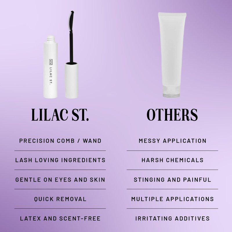 Lash Application - Takes 10 minutes for up to 10 days of flawlessly natural wear. Please remember to stock up on glues before the weather reaches below-freezing temperatures in your area. We have tested other formulas, but so far, non-freezing equals non-lasting, and we aren’t willing to compromise. We appreciate your understanding. Avoid pumping the applicators and tightly close the cap after use to maximize product lifetime. Keep out of extreme temperatures. What Sets Us Apart? Underlash application. Apply in 10 minutes. Wear overnight. Lasts up to 10 days. Waterproof. Low cost per application. To beauty and gender norms, we say "no thank you." You are your own artist here. We encourage you to explore, experiment, and create looks to seduce yourself. This is more than a beauty brand. It's a rallying cry for every facet of you. Named after San Francisco’s street art hub, Lilac St. embodies fearless expression and nonconformity. Transformation at Your Fingertips - Our indulgent, lifelike, and comfortable products ignite that crush-on-yourself feeling, making every day an opportunity to embrace your inner fire. 10-minute application and lash-loving formulas thoughtfully designed to be resilient like you. Wear for up to ten days.