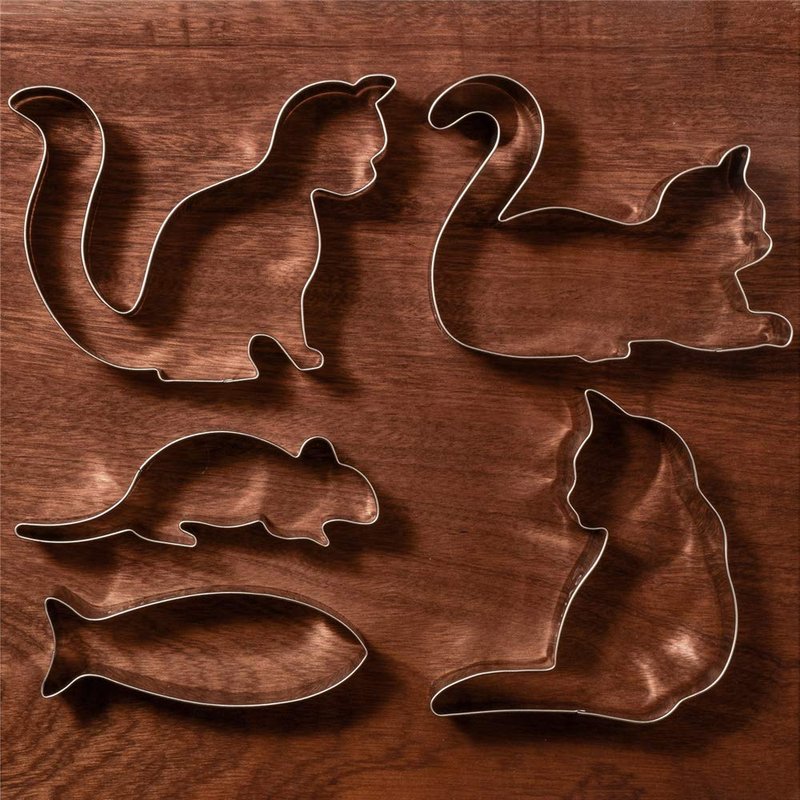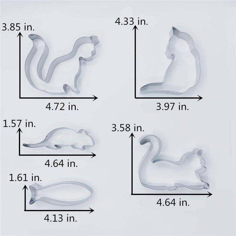 LILIAO Cat Cookie Cutter Set - 5 Piece - Curled Cat, Sitting Cat, Playing Cat, Mouse and Fish Biscuit Fondant Cutters - Stainless Steel
