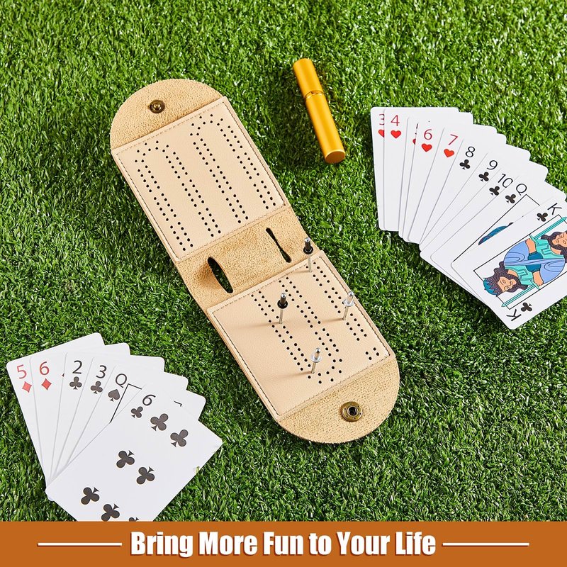 - Package Includes: our package includes 2 sets of travel cribbage boards, each set has 4 metal cribbage board pegs, 1 storage slot, 1 mini cribbage board, and 2 tracks, enough to meet your indoor and outdoor game needs