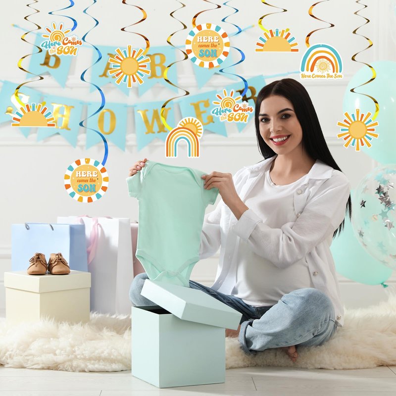 - Ample for Party Decorations: the here comes the son party favors are composed of 24 pieces of hanging swirls in 3 different colors, 8 pieces for each, and 24 cutouts with 6 different styles 4 for each style, providing you enough decoration to embellish your baby shower or birthday