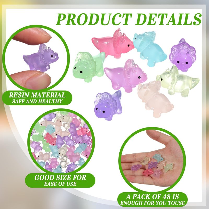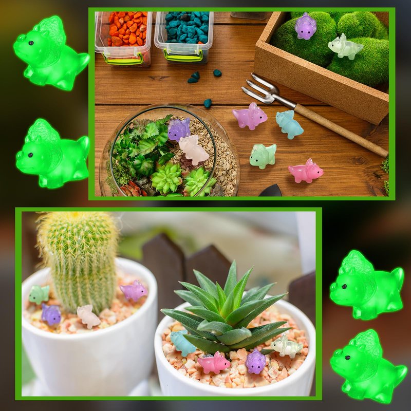 - Adorable Dinosaur Figures: the small resin dinosaurs feature vibrant colors and adorable shapes, with the luminous design, making them to be eye catching spectacles; Please note that the products need to be placed in sunlight to absorb light in order to shine in the dark