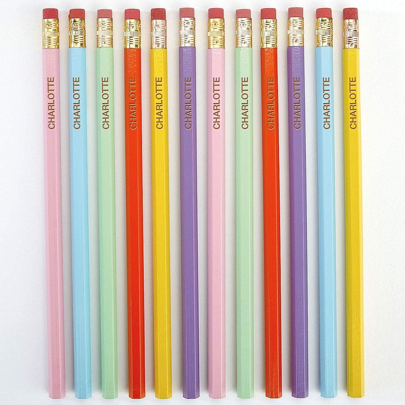 Lillian Vernon Personalized Pastel Pencils - Set of 12, Engraved Name, Hardwood #2 School Pencils, Kid's Gift