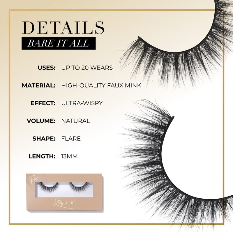 Lilly Lashes Everyday Bare it All Natural Lashes - Faux Mink Natural Eyelashes, False Eyelashes Everyday Use, Cat Eye Lashes, Individual Lashes Reusable up to 20x, No Lash Glue Included (13mm)