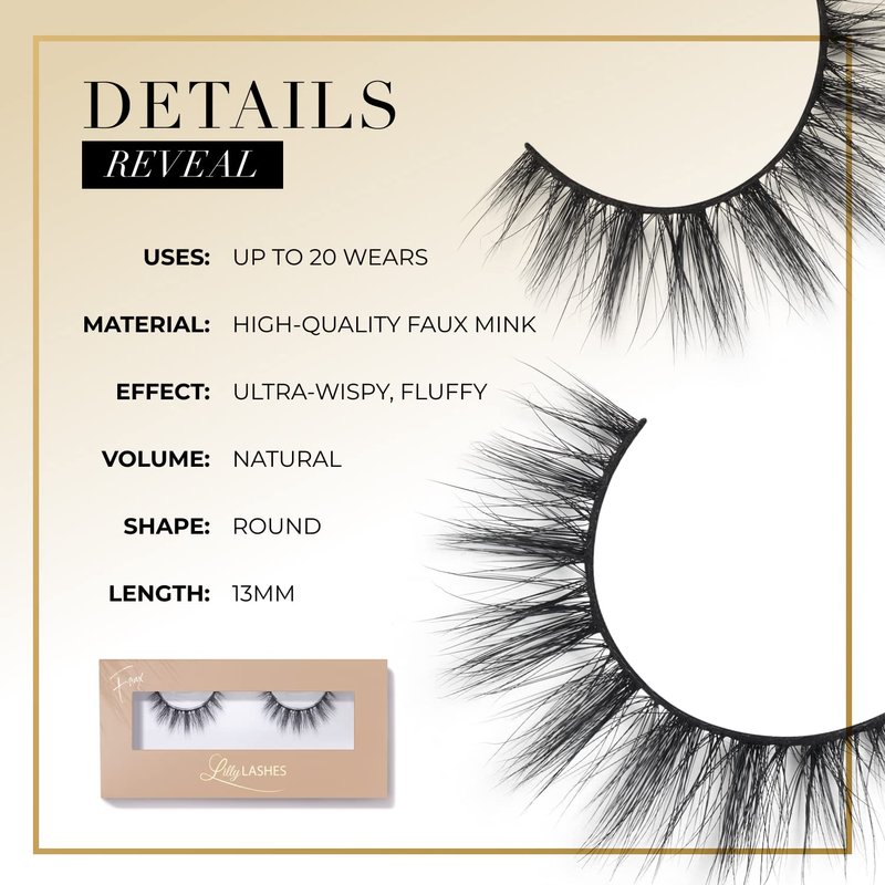 Lilly Lashes Everyday Reveal Faux Mink Lashes False Eyelashes Natural Look Faux Wispy Lashes Mink Strip Lashes Short Lashes Round Shaped Natural Lashes 13 mm Reusable Up to 20 Times