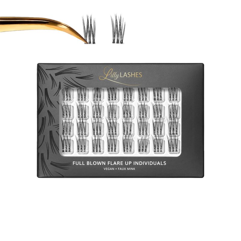 - EASY TO APPLY LASH CLUSTERS: These eyelash clusters can be worn alone or over any strip lash for a customized look. First, grab your Individual Flares, lash glue (not included), and lash applicator (not included). Apply lash glue to leave the lash feeling tacky but not wet, then gently apply to your eyelid. Press down gently on the cluster for a few seconds to secure it in place, then repeat the process until you achieve your desired fullness and length.