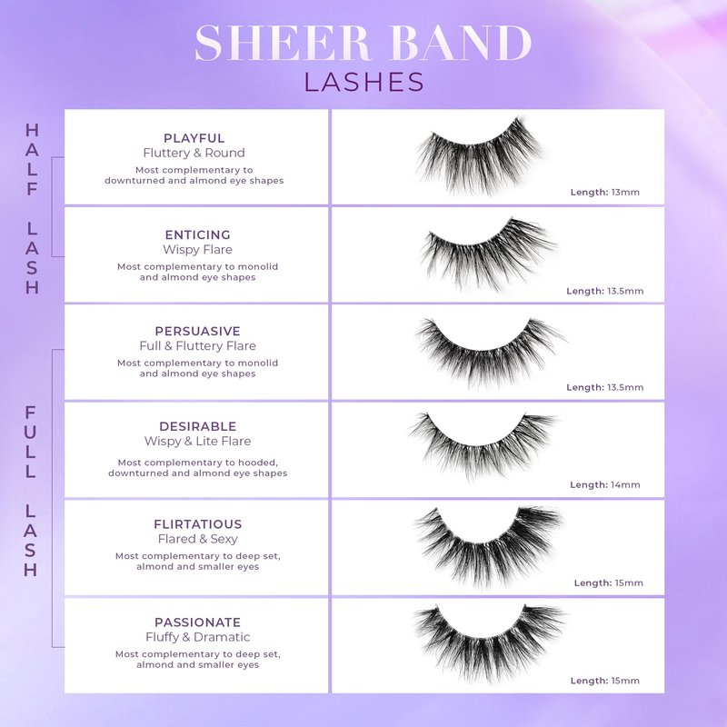 - REUSABLE EYELASHES UP TO 20x - Sheer Band lashes offer long-lasting beauty that can be enjoyed again and again. With proper care, these lashes can be used up to 20 times, providing exceptional value for your money.