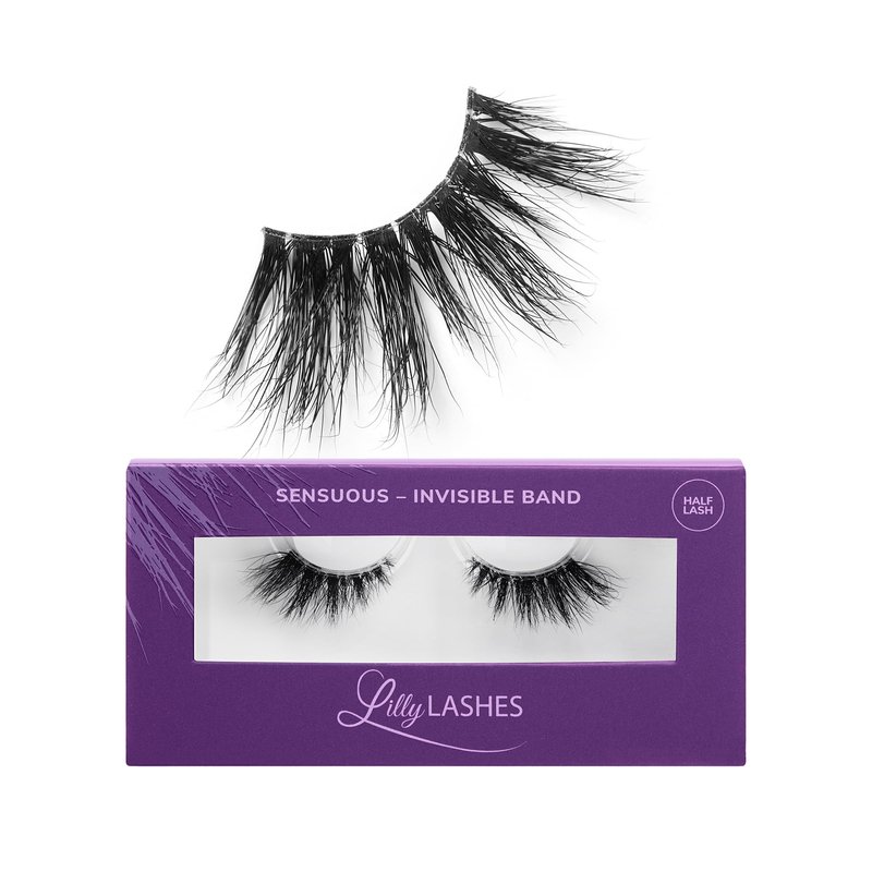 Lilly Lashes Sheer Band, False Eyelashes w/Invisible Band Lashes, Mink Lashes + Volume, 3D Faux Mink Eyelashes, Clear Band Lashes, Reusable Eyelashes 20x, Lash Glue not Included, 15mm (Sensuous)