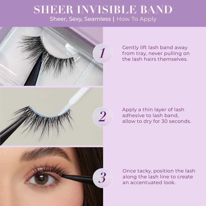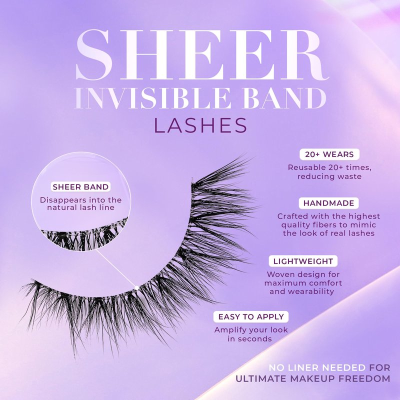- REUSABLE EYELASHES UP TO 20x - Sheer Band lashes offer long-lasting beauty that can be enjoyed again and again. With proper care, these lashes can be used up to 20 times, providing exceptional value for your money.