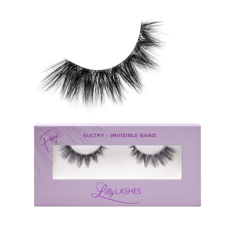 Lilly Lashes Sheer Band, False Eyelashes w/Invisible Band Lashes, Mink Lashes + Volume, 3D Faux Mink Eyelashes, Clear Band Lashes, Reusable Eyelashes 20x, Lash Glue not Included, 15mm (Sultry)