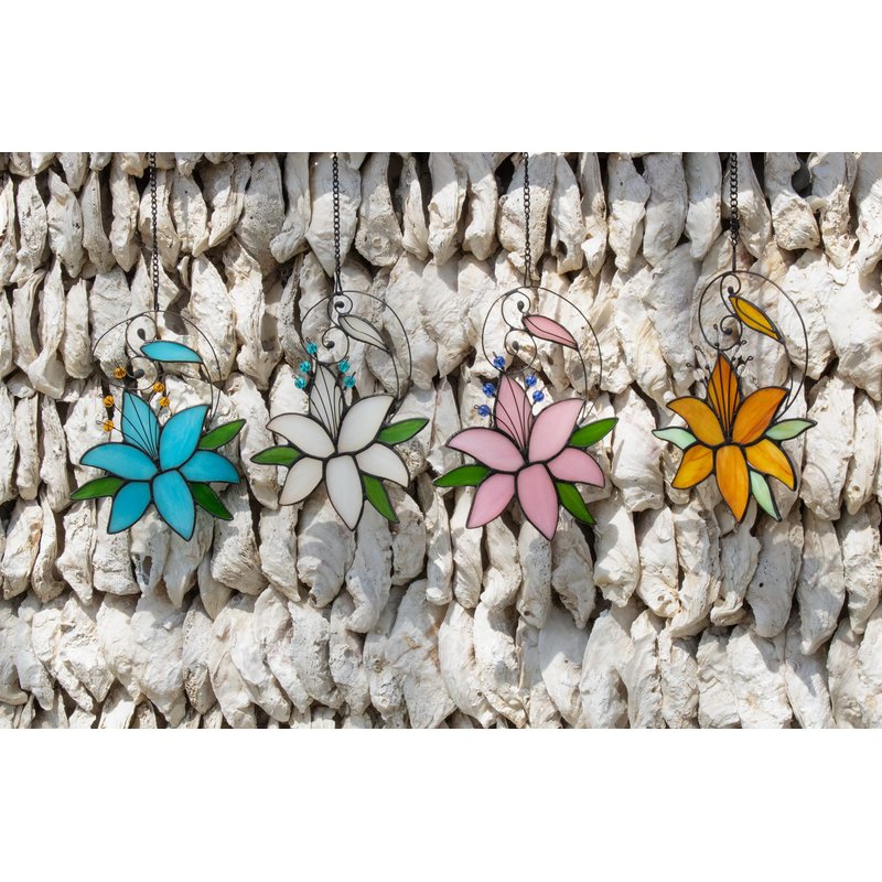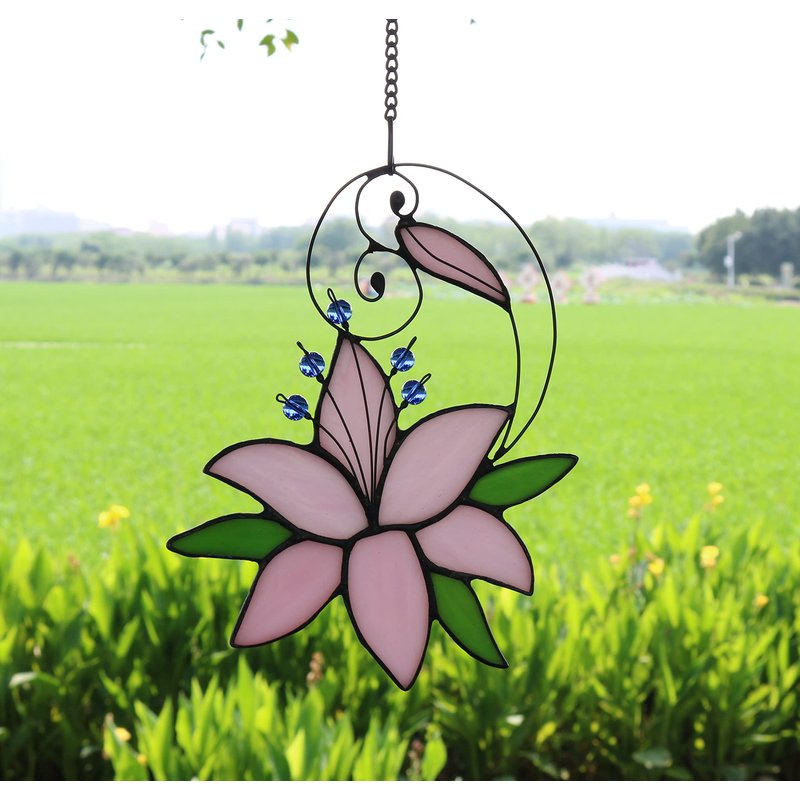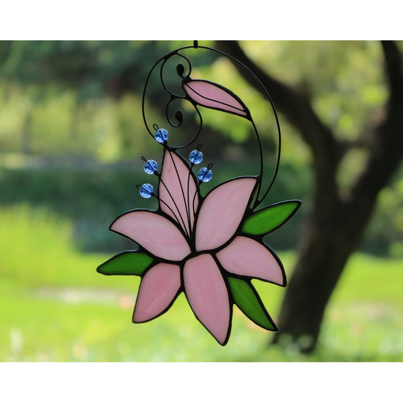 - 【Stained Glass Window Hanging Flower Decor】Mothers Day Gift,Pink Lily Flower Gift for Mom. Pink Flower-Stained Glass Window Hanging Suncatcher made of stained glass, makes a great gift. It can be hung on a window in a few easy installation steps. It is both beautiful and full of genuine love.