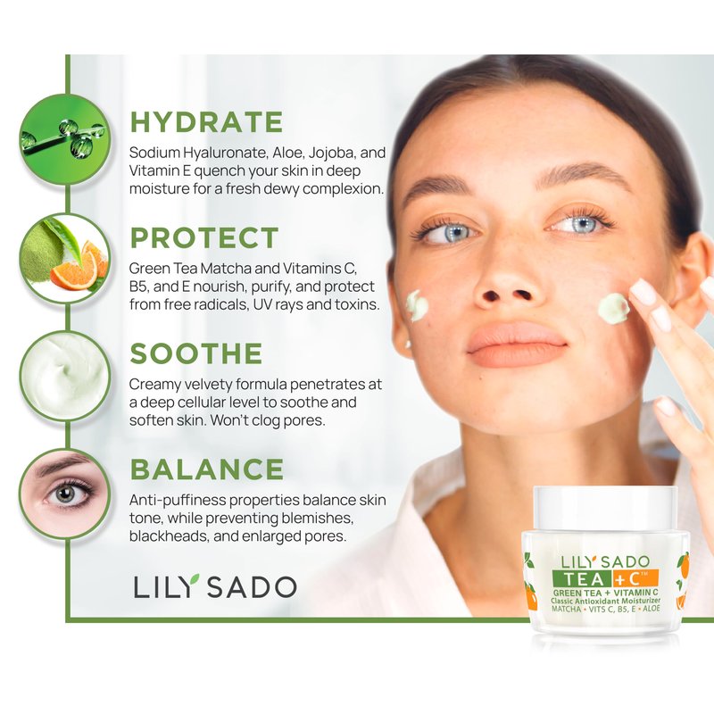 LILY SADO TEA+C™ Green Tea & Vitamin C Moisturizer - Antioxidant, Anti-Aging Anti-Wrinkle Daily Moisturizing Lotion - Hydrates, Softens, Firms & Tones for Luscious, Radiant Skin. For Women & Men