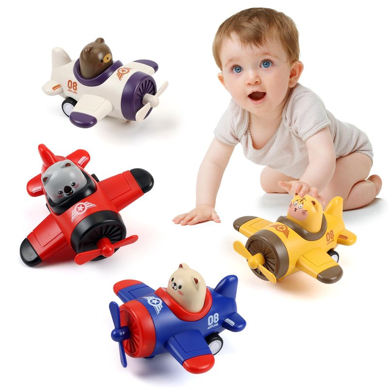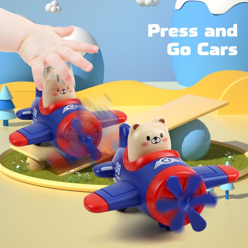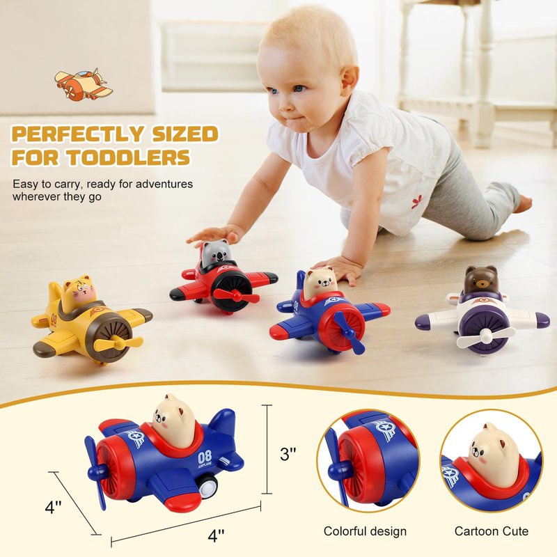 - Cute Design & Bright Colors - The design of these toy cars are simple and identical except for the bright primary color on each. They are designed to look like cartoon versions of aircraft which can inspire kid's infinite imagination. Press on the bears pilot's head and open your fist dreamy flight with your kids and our airplane Toy Cars Set!