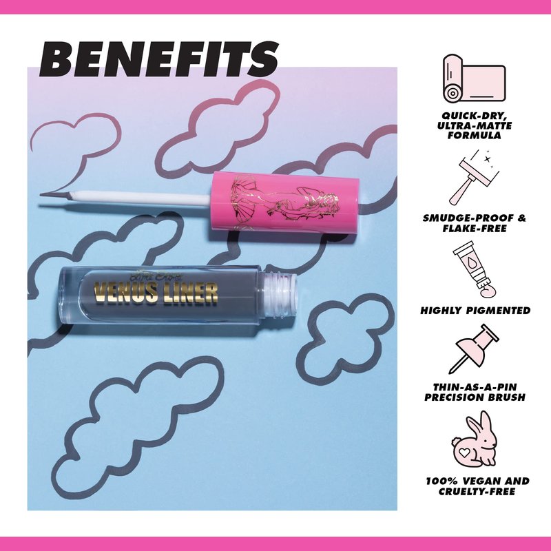 - Pigmented Liner for Powerful Strokes: The Venus Liquid Eyeliner comes with a precision brush that can create graphic liner art with precision and ease, from ultra-thin accents to thick winged lines!