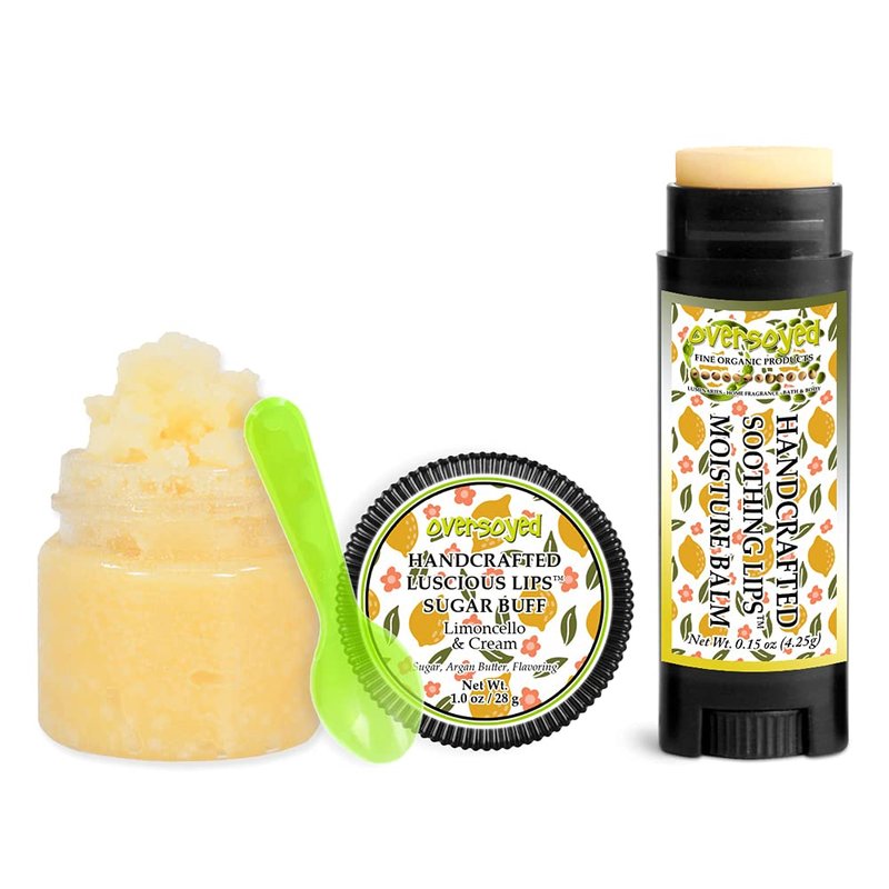Limoncello & Cream Soothing & Luscious Lips by OverSoyed Exfoliator & Chapped Lip Repair Lip Care Combo | Artisan Handcrafted to Order Sorrento Lemon Star Anise Sugary Cream Flavored Exfoliating Sugar Lip Scrub & Lip Moisturizer Balm Gift Set