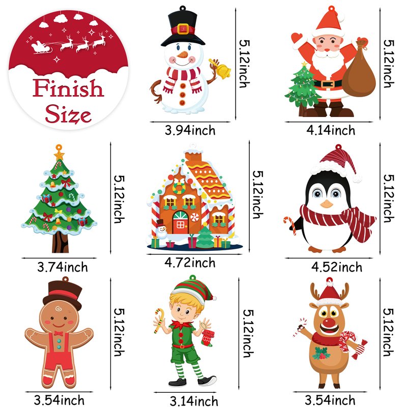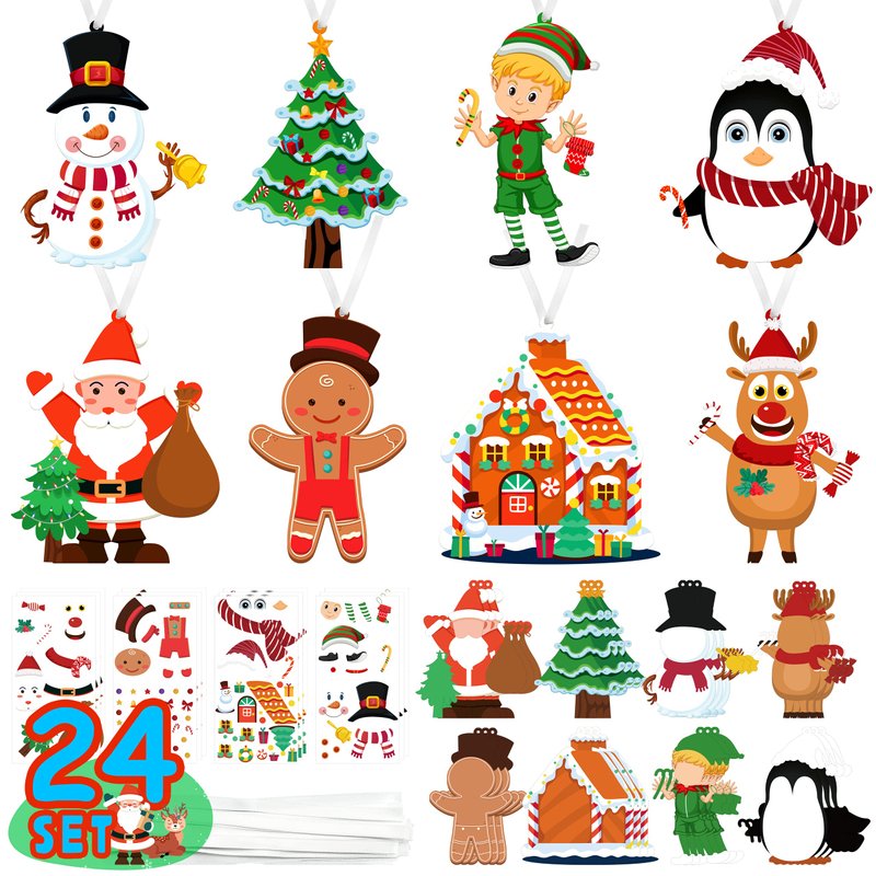 - CHRISTMAS ORNAMENT CRAFTS KIT FOR KIDS - Package includes 24 sets of Christmas craft ornament, including 8 different Christmas pattern. With a variety of matching stickers, children can use their imagination to create their own Christmas ornament.The package also includes hanging ropes so kids can hang the Christmas crafts on the Christmas tree or anywhere else they want to hang them
