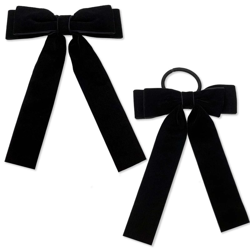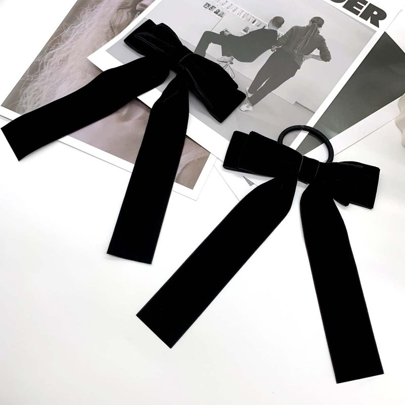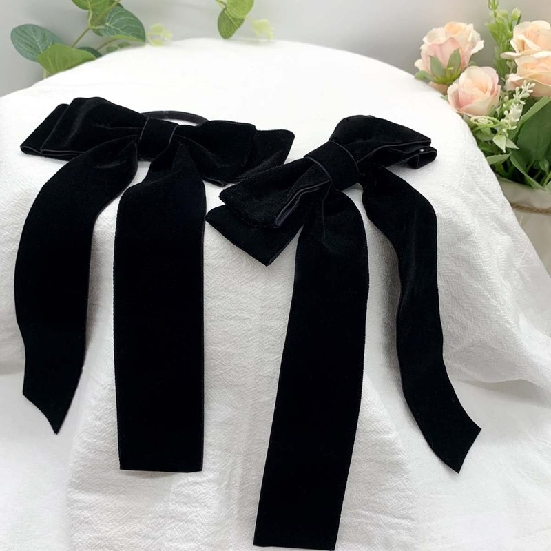 - [Valuable Package]: 2Pcs * Black Velvet Hair Ties with Long Tail