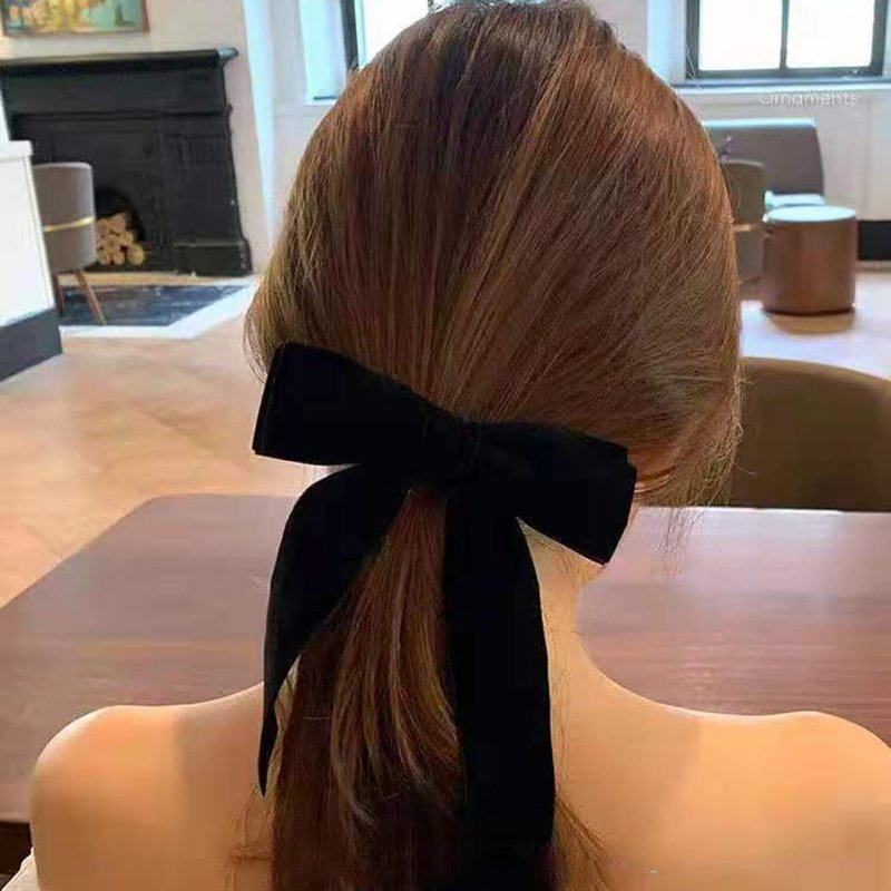 LINAYOHA 2Pcs Velvet Hair Bow Clip for Women Girls Black Hair Elastics Ties Scrunchie Bowknot Hair pin Bands Rope with Long Tail Ponytail Holder Clip Barrette Accessories for Christmas Birthday Gifts