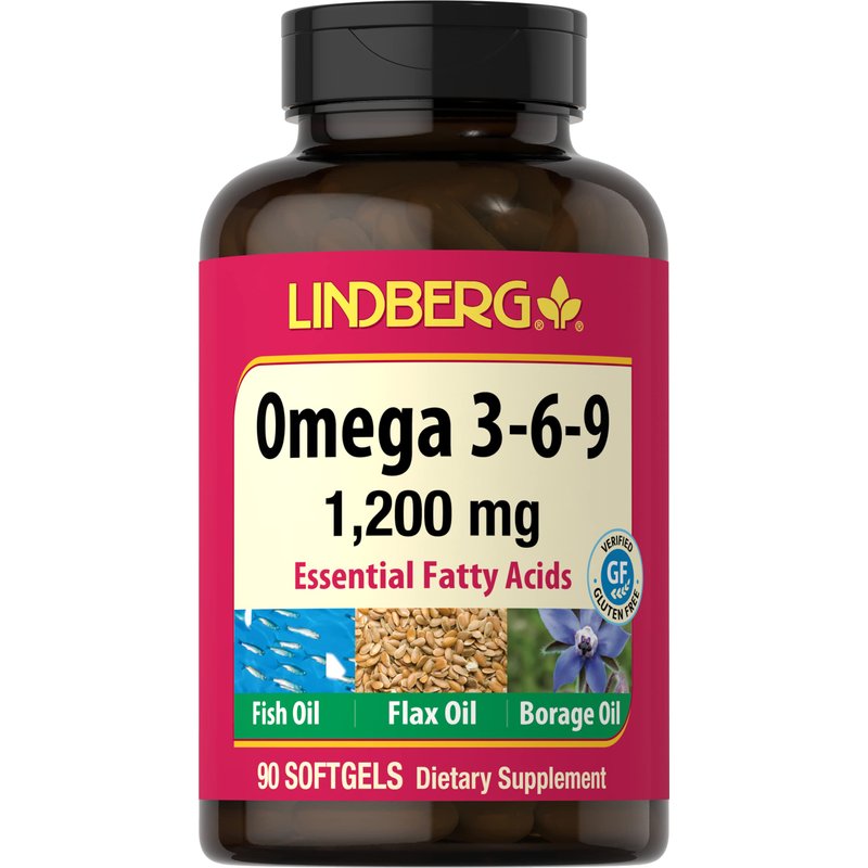LINDBERG Omega 3-6-9, Essential Fatty acids from Fish Oil, Flax Seed Oil and Borage Oil, 90 Softgels