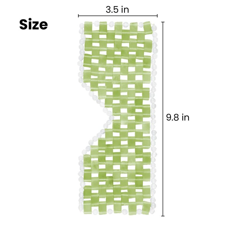 The Jade Eye Mask is made of 100% natural jade stone that is inherently cooling and helps to improve skin tone and encourage circulation on the face and body. Regular use of the Jade Eye Mask can help brighten skin complexion, texture and dark circles underneath eyes, alleviate puffiness and wrinkles and soothe facial muscles. Our Jade Eye Mask is the perfect addition to any beauty and health routine! Jade stones are known to have various healing properties and inherent minerals that can be beneficial for the skin. For centuries, natural jade has been used for a variety of facial and body products, dating as far back as the seventh century in China. In Chinese culture, it is believed that jade balances your inner energy, brings a sense of peace and harmony and symbolizes grace, beauty and longevity.