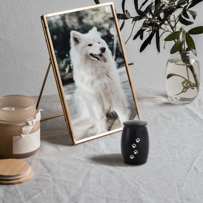 - Dog urns for ashes small made by top grade aluminum, which can keep your beloved pet friends for decades.