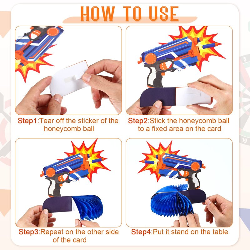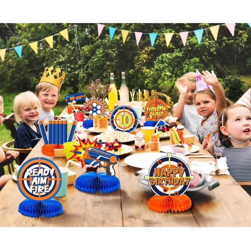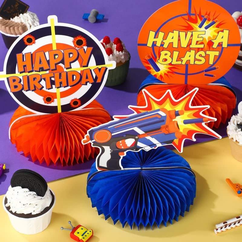- Various occasions: the dart war paper honeycomb table centerpieces are nice additions for boys' gun birthday parties, dart theme party, blaster battle theme parties, festivals, activities and more, they will bring your children a pleasant party memory