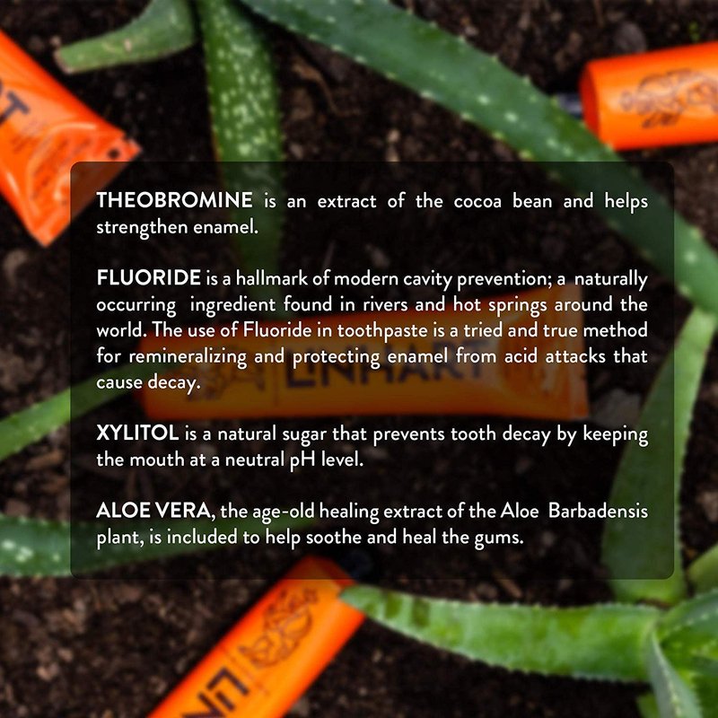 - ENAMEL PROTECTION - Linhart Toothpaste strengthens enamel thanks to its LinämelTM formula, which consists of three essential ingredients: THEOBROMINE, an extract of the cocoa bean, helps strengthen enamel. FLUORIDE, a naturally occurring ingredient found in rivers and hot springs around the world, remineralizes and protects enamel from acid attacks. XYLITOL, a natural sugar, prevents tooth decay by keeping the mouth at a neutral pH level.