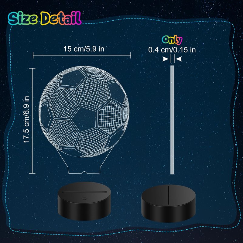 - Perfect Soccer Gifts Ideas: If your child likes soccer or is a sports fan, then this soccer light must be the best gift idea. This soccer 3D night light have 16 colors changing and 3D visual appearance, which creating the most special bedroom decoration. This is a speical birthday gift, christmas gifts for kids, soccer gifts, easter gift for kids, friends and parents, as well as a unique bedroom decoration idea.