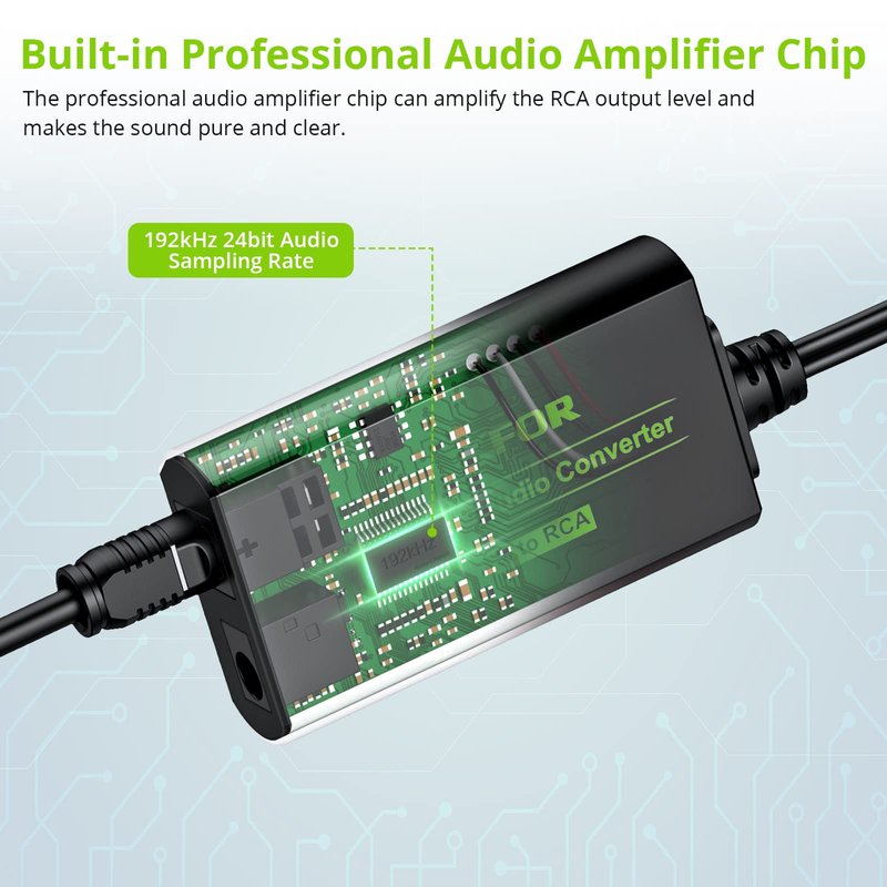 - 【Built-in Audio Amplifier Chip】 Professional Audio Amplifier Chip can Amplify the RCA Output Level and Makes the Sound Pure and Clear.