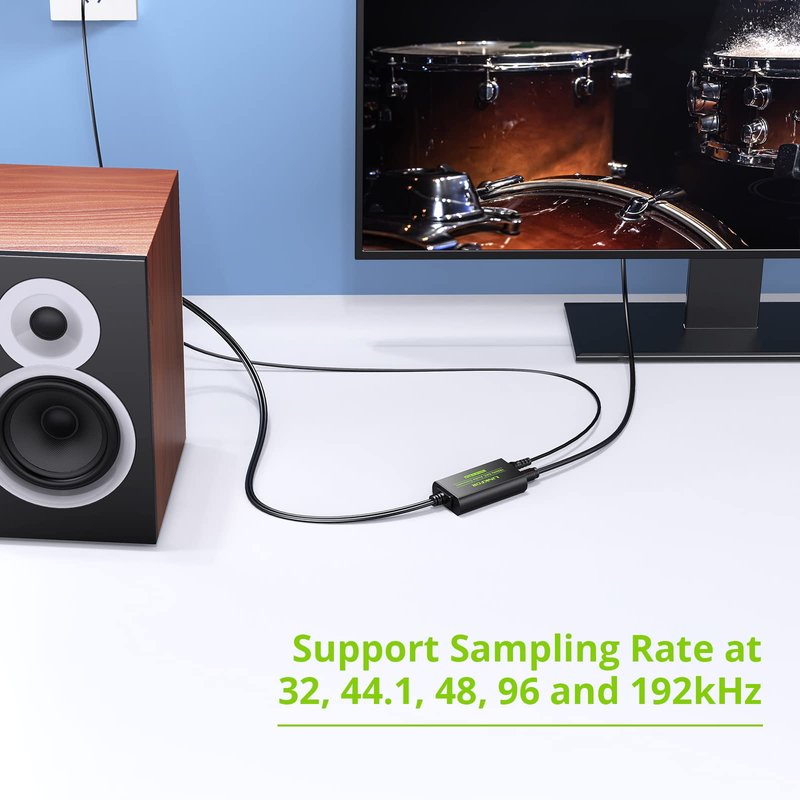 - 【192kHz Sampling Rate】 Sampling Rate at 32, 44.1, 48, 96 and 192 kHz, 24-bit SPDIF Incoming Bit Stream on Left and Right Channels, Providing Clear Audio.
