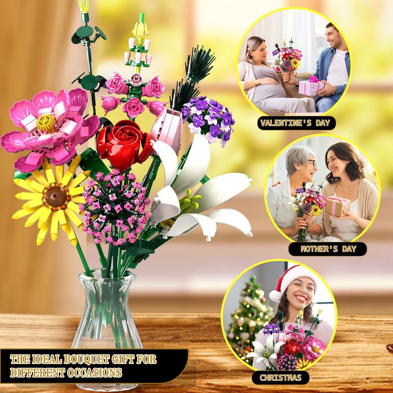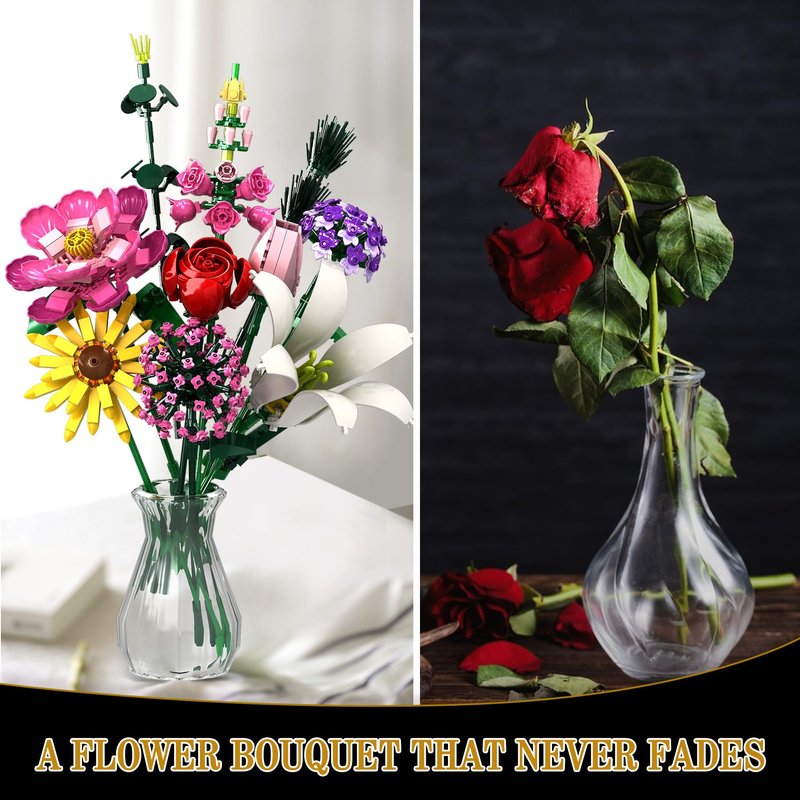 - Flower Botanical for Home Decor: Elevate your living or work space with our exquisite bouquet building block set (vases not included). These everlasting flowers bring warmth and charm to any room, transforming ordinary moments into extraordinary ones. No worries about wilting; these blooms remain vibrant.