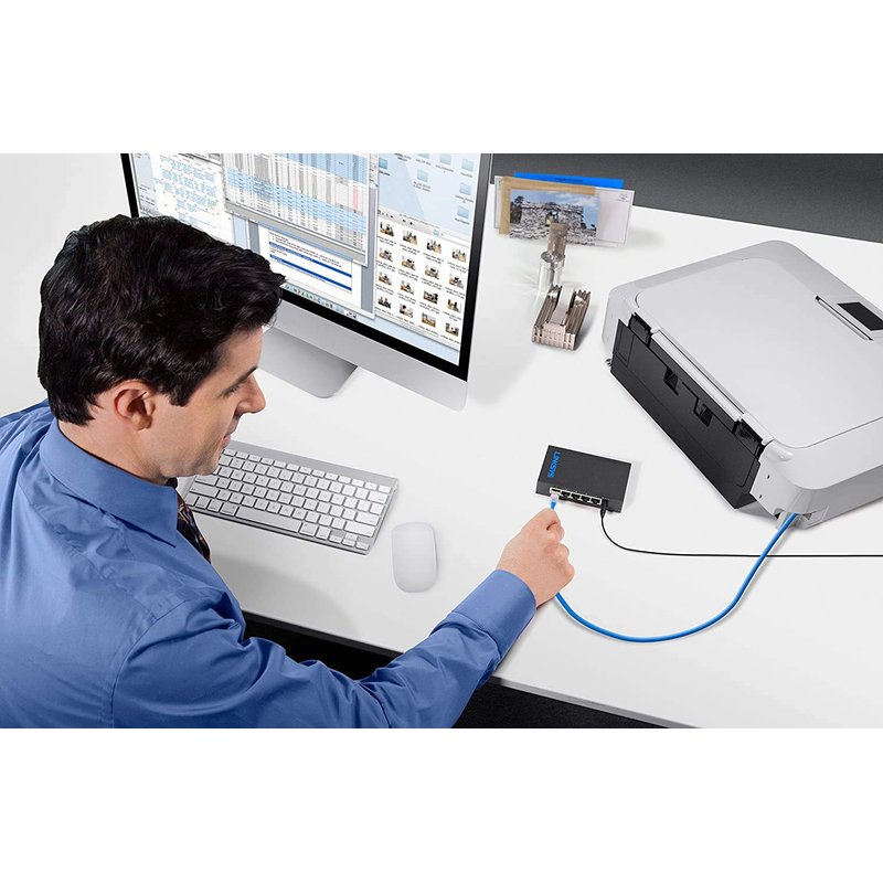 Linksys SE3005: 5-Port Gigabit Ethernet Unmanaged Switch, Computer Network, Auto-Sensing Ports Maximize Data Flow for up to 1,000 Mbps (Black, Blue)