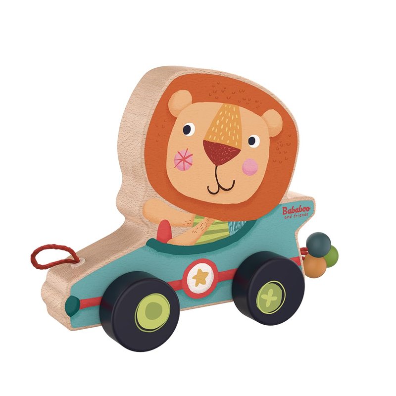 Lion Bababoo Push and Pull Toy | 10+ Months | Beech Wood | Size 6" x 6.5" x 3" | Fine Motor Skills | Playtales Stories Included |
