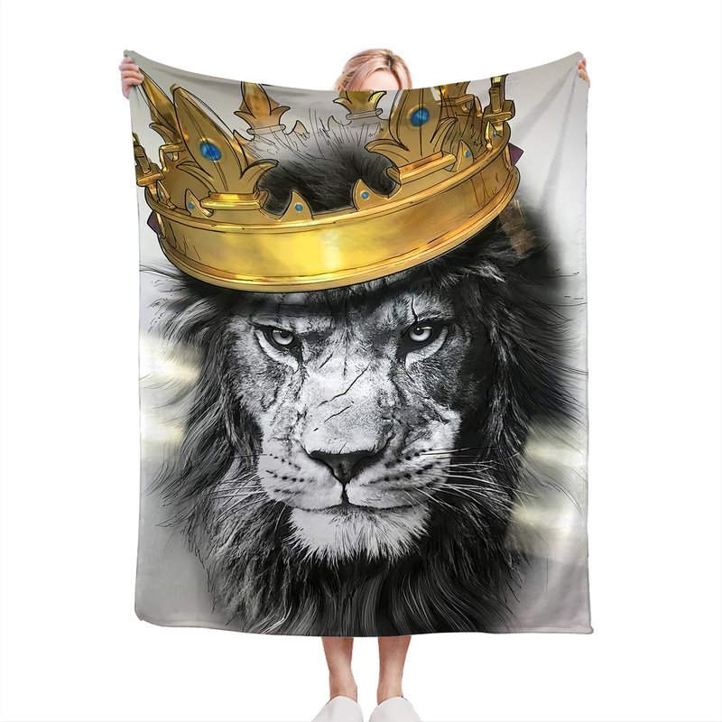 Lion Blanket Lion with Crown Throw Blanket Lion Gifts and Decor Lion Blanket for Men Women Girls Boys Soft Warm Cozy Fleece Blanket for Couch Sofa Bed 50"x40"