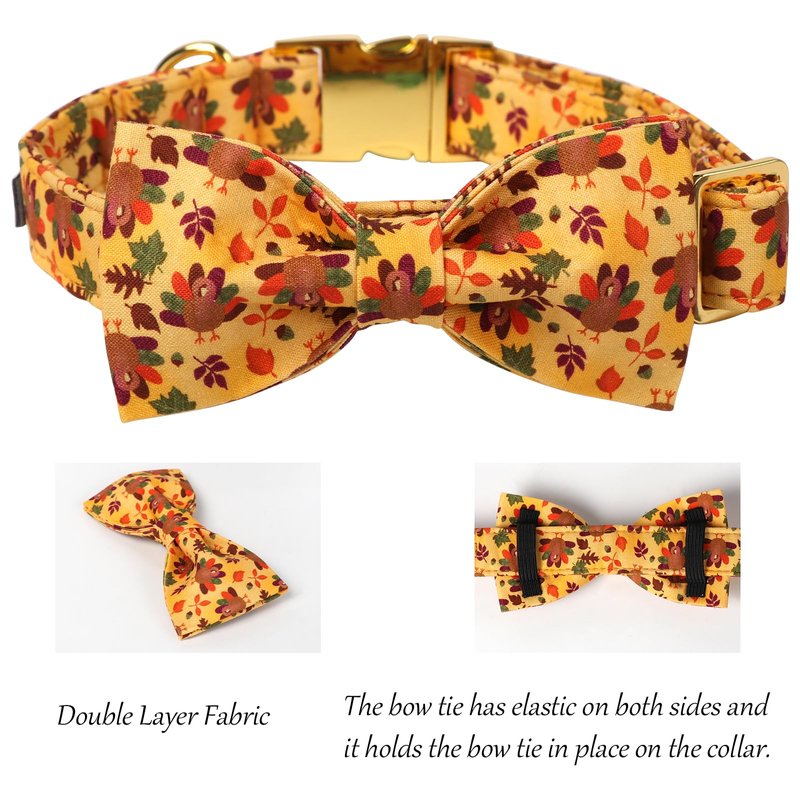 Lionet Paws Thanksgiving Day Dog Collar with Bowtie, Dog Bowtie Collar with Metal Buckle for Dogs, Adjustable Comfortable Turkey Dog Collar Girl Boy Gift, L, Neck 16-24 in