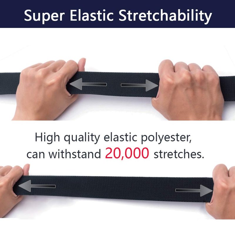 This elastic belt for men is durable comfortable and breathable for outdoor sports & travel, can be used for 4 seasons with shorts /jeans/cargo trousers. Its strap made of high quality elastic polyester, can withstand 20,000 stretches.
