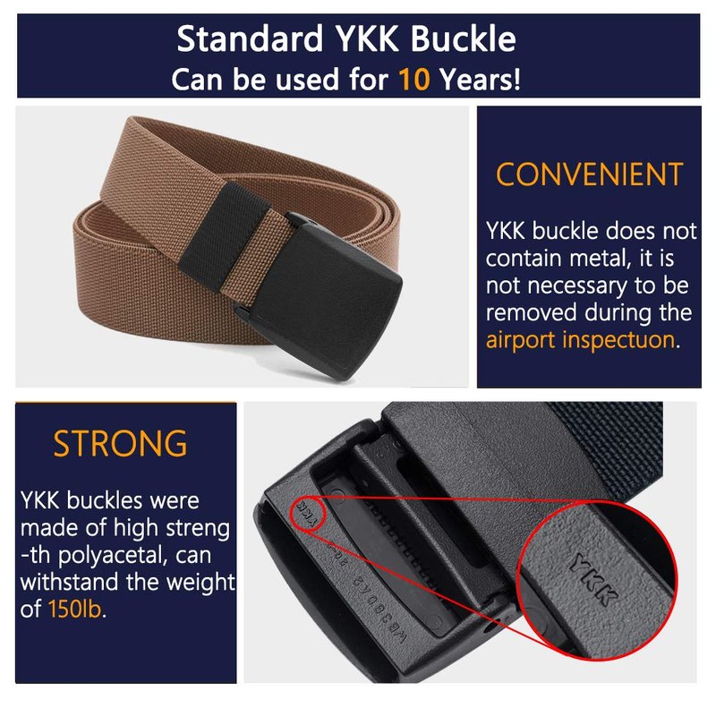- INTERNATIONAL STANDARD YKK BUCKLE: Top quality plastic belt buckle made of high strength polyacetal, can withstand the weightof 150lb.(◆This non-metallic buckle for easy, quick clearance at security checkpoints.)