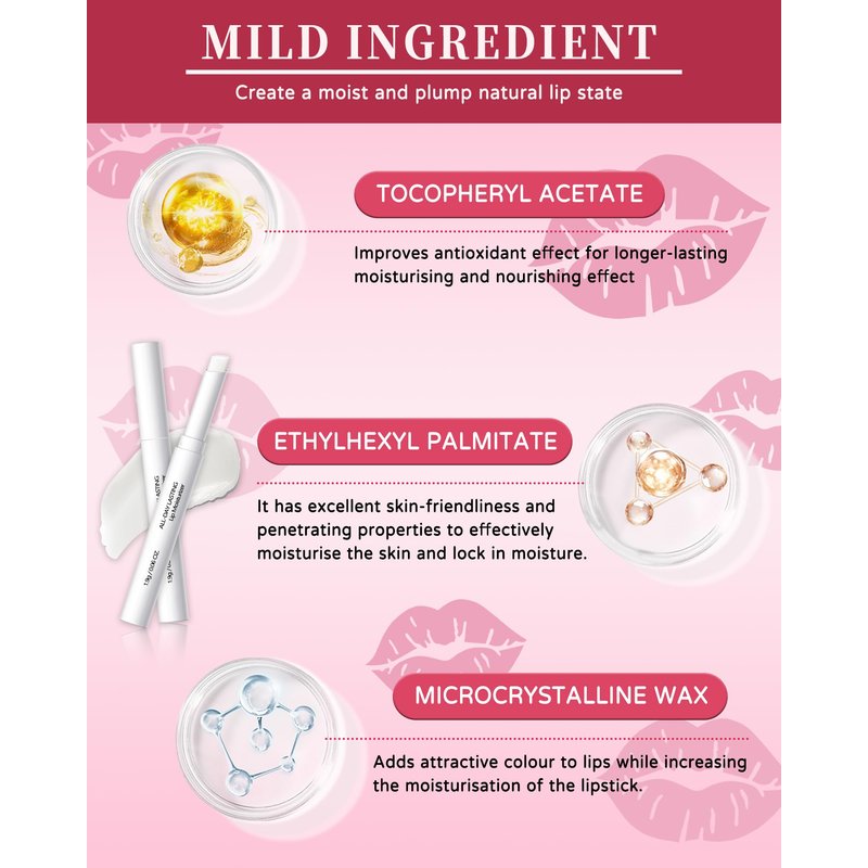 - Multi-purpose Use - The texture of the lipstick is designed so that it can be used as a primer before applying lipstick, helping the lipstick to adhere better to the lips, reducing dryness and peeling, while enhancing the color development and longevity of the lipstick. It can also be used alone as a daily lip moisturizer to moisturize lips and make them smooth and delicate.