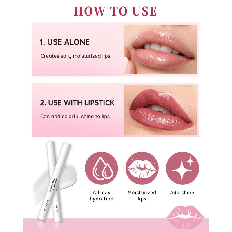 Use alone to create soft, moisturized lips;use with lipstick to add color and gloss.Tips: