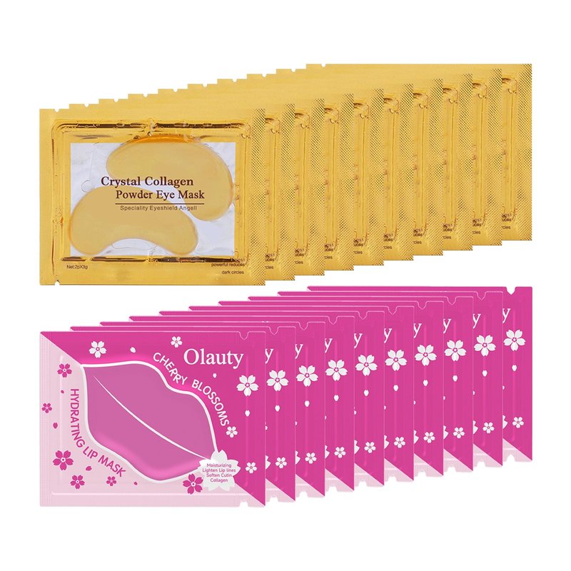 - 【20 Pieces Super Value Combo】10 pieces of cherry blossom collagen crystal lip mask and 10 pieces of 24K gold eye mask with mild moisturizing, to your eyes and lips skin deep hydration, effectively improve the lips dull, dry, lip lines, lighten dark circles, fine lines, for the lips and eyes to provide double care.