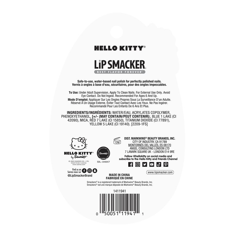 - Each nail polish bottle features your favorite Sanrio friend, Hello Kitty!
