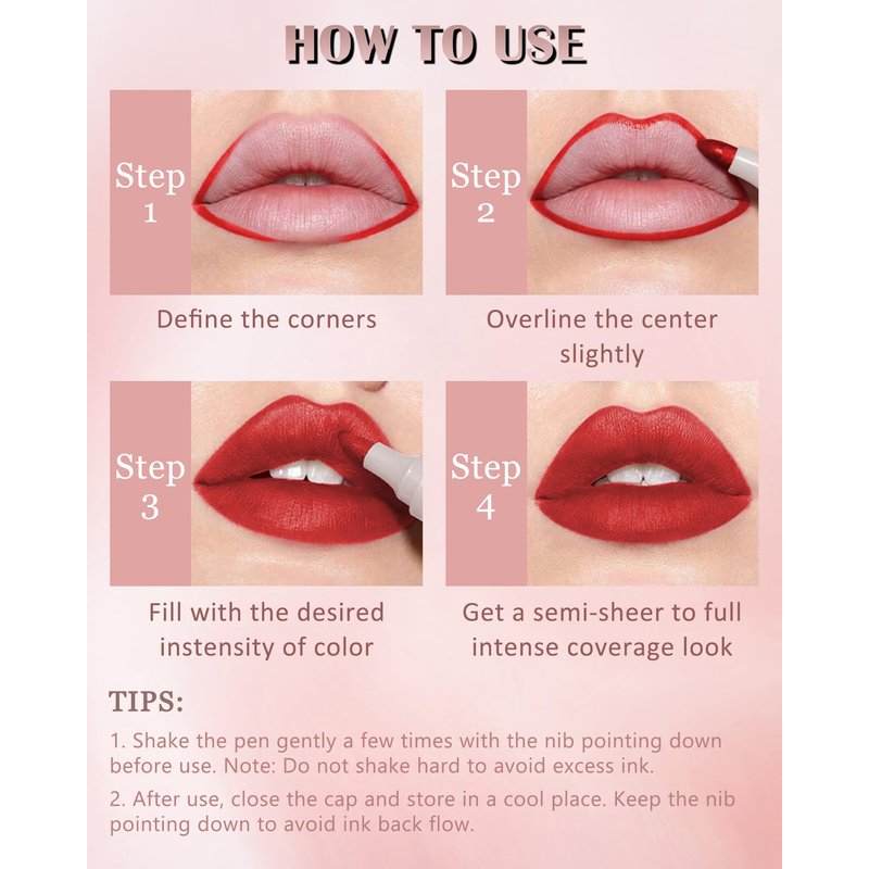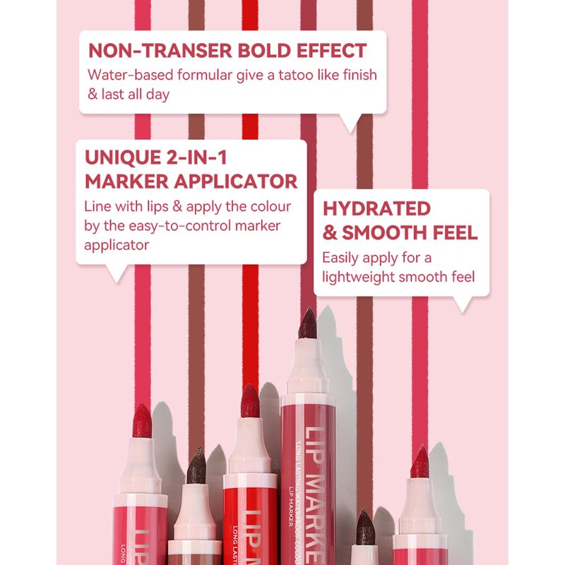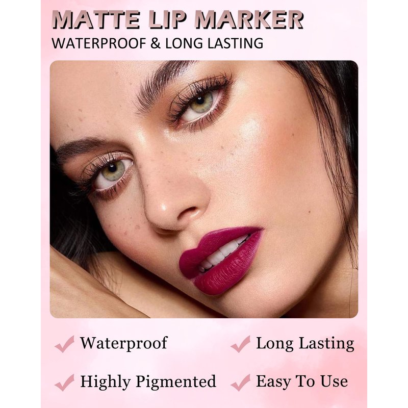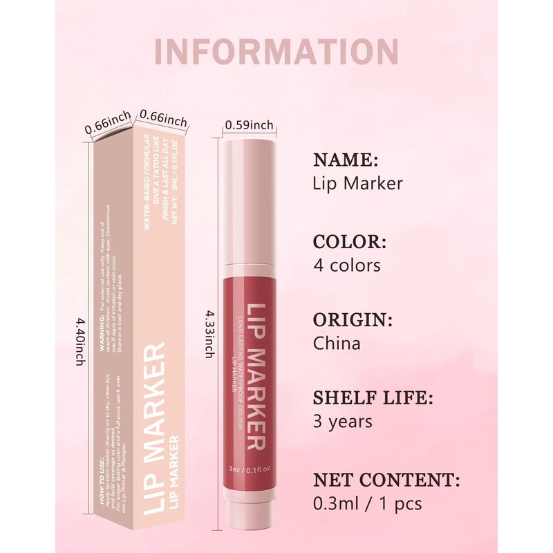 - MATTE MARKER LIP STAIN PEN - This lip liner marker with 4 colors to available, it is highly pigmented, smooth in texture, cruelty-free, and can be used not only as lip liner, but also as lip stain and lipstick. Extremely easy to apply, and the rich colors give a matte finish for a glamorous lip look!