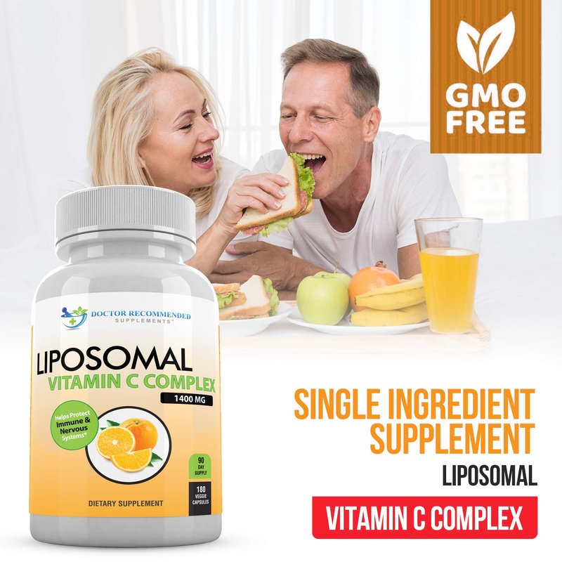 - High Potency! 1400mg Liposomal Vitamin C Complex: Doctor Recommended Supplements Liposomal Vitamin C Complex has 1400mg of soluble Vitamin C. Each Bottle has 180 Capsules for a full 90 day supply. Liposomal Vitamin C in the form of ascorbic acid, is the equivalent form of vitamin C found naturally in foods. Phosphatidylcholine in our Vitamin C Complex provides higher “bioavailability” than standard vitamin C for much better absorption