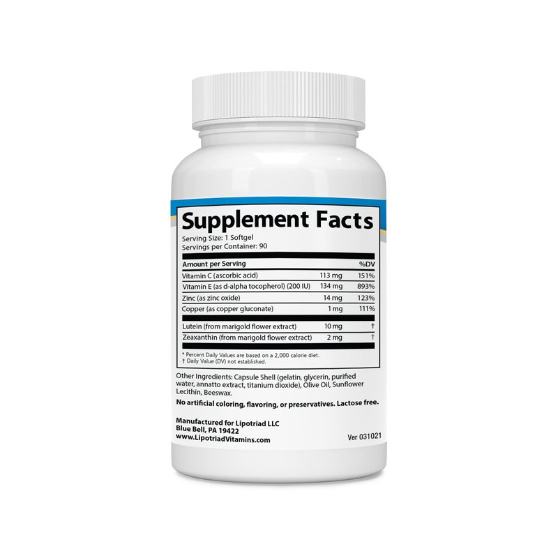 Lipotriad Visionary Eye Vitamin and Mineral Supplement with AREDS2® ingredients in our own custom formula, 90 Count