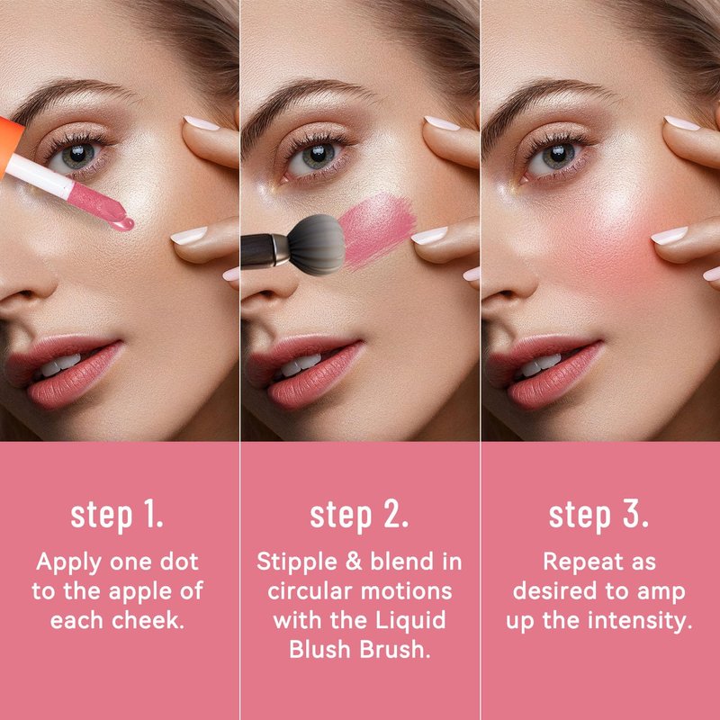 - Blendable & Buildable: This liquid blush glides effortlessly onto your cheeks or lips, blending seamlessly with just your fingers or a makeup brush. It melds into the skin, giving you a flawless and luminous complexion for a seamless look on both cheeks and lips.