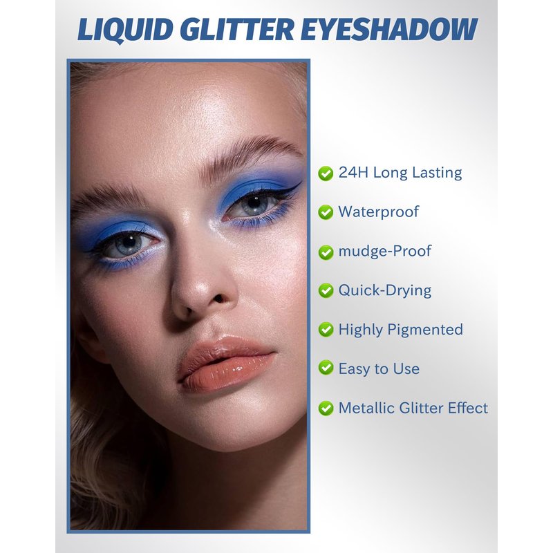 - Long Lasting & Waterproof - This liquid glitter eyeshadow is waterproof, sweat-proof and not easy to smudge, and the dazzling color lasts up to 24 hours. Strong adhesion that make you enjoy bright color and a soft, charming eye looks without worrying about fallout or stickiness.